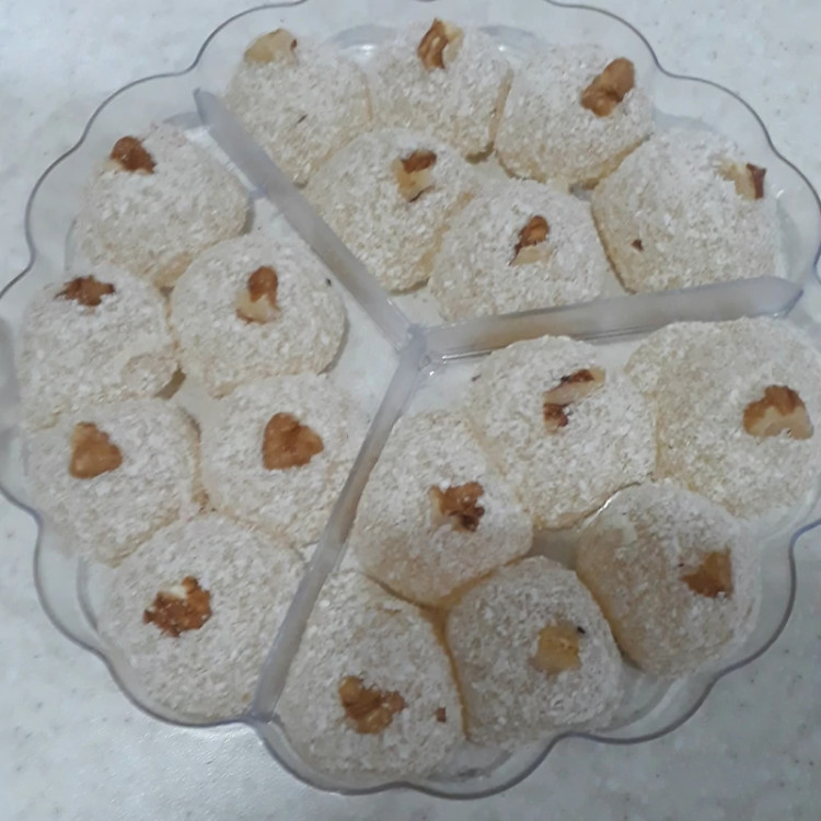 لقمه ای هست که راحت از گلو پایبن می رود. از نشاسته ،آب ،گلاب ،پودر نارگیل تشکیل شده است . قدمت ۵۰۰ ساله دارد. ازاولین روز پیدایش تا امروز دستور پخت آن بدون تغیبر باقی مانده. درطمع های مختلف تهیه میشود.به دلیل نرمی زیاد مورد توجه افراد قراردارد