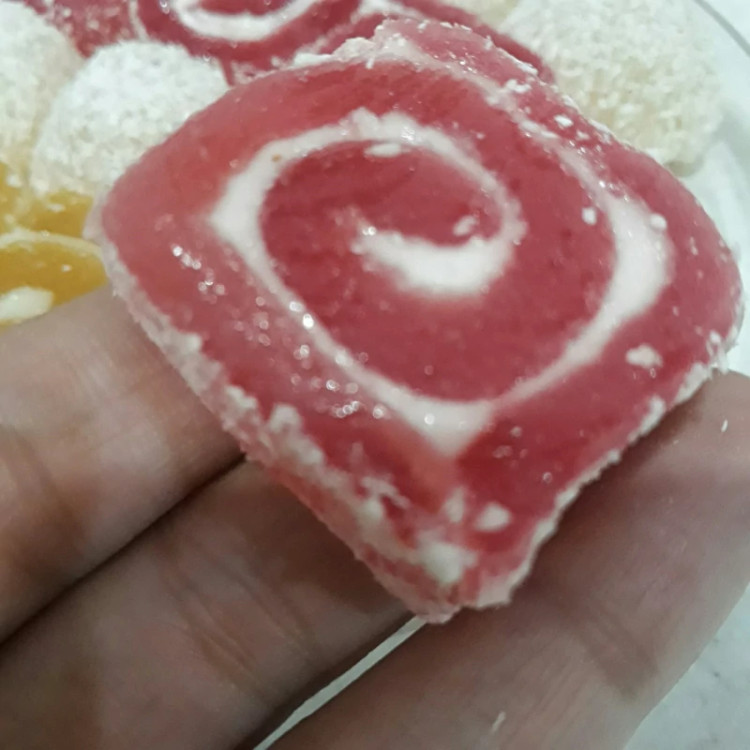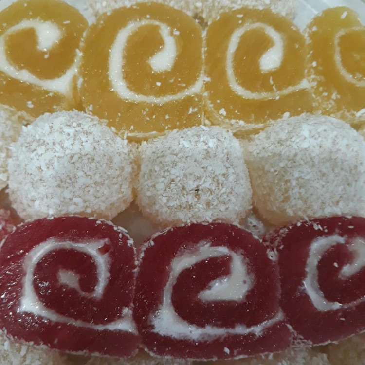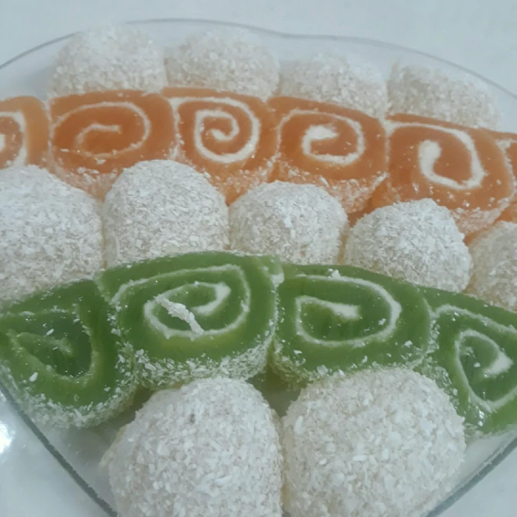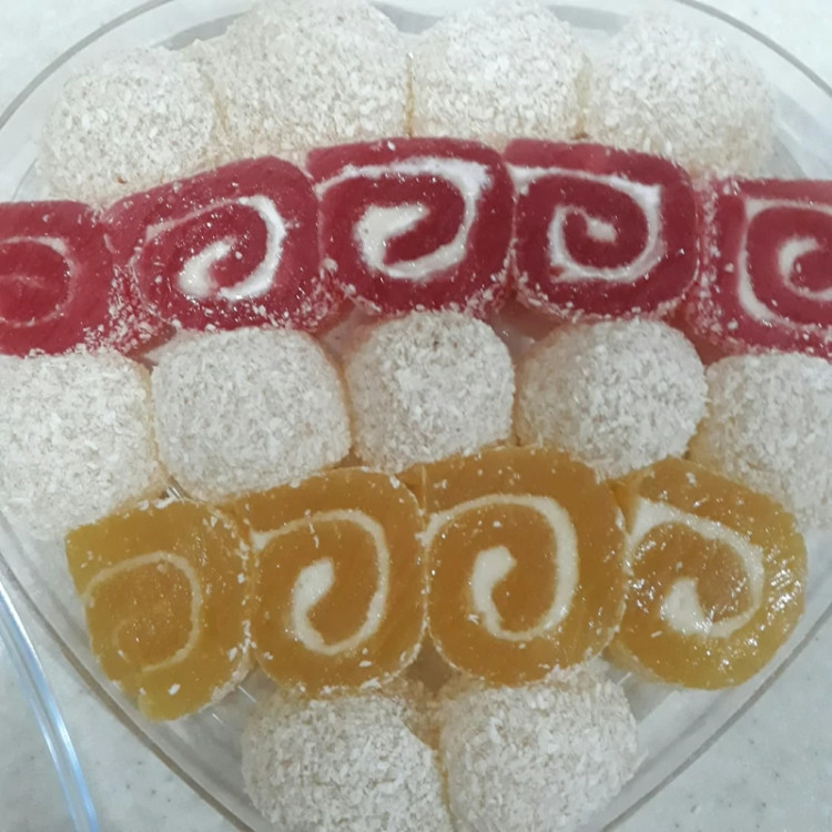 باسلوق نارگیلی بدون گردو درکنار راحتی رولتی در ظرف طلقی