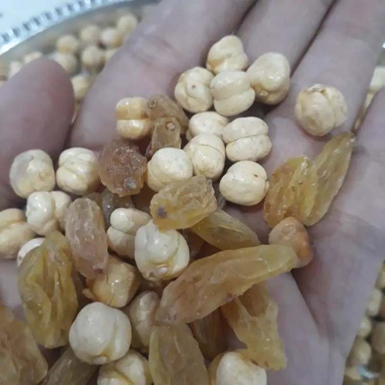 نخودچی کشمش یکی از خوراکی های بسیار محبوب می باشد که اغلب از آن به عنوان آجیل یاد می شود. به عبارت دیگر این نوع ماده غذایی را با سایر مواد غذایی مانند پسته، فندق، بادام و …. مخلوط می کنند و از آن ها به عنوان آجیل استفاده می کنند ۷۰ درصد این محصول نخودچی و۳۰ درصد کشمش می باشد. نخود چی این محصول (بی نمک ) هست.